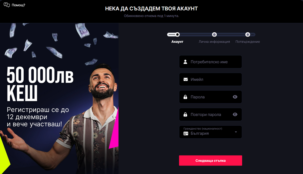 Регистрация в платформата на букмейкъра