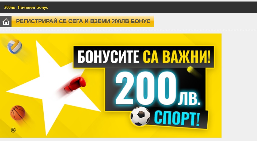 За нов клиент в Спорт се предлага максимален бонус 100% до 200 лева.